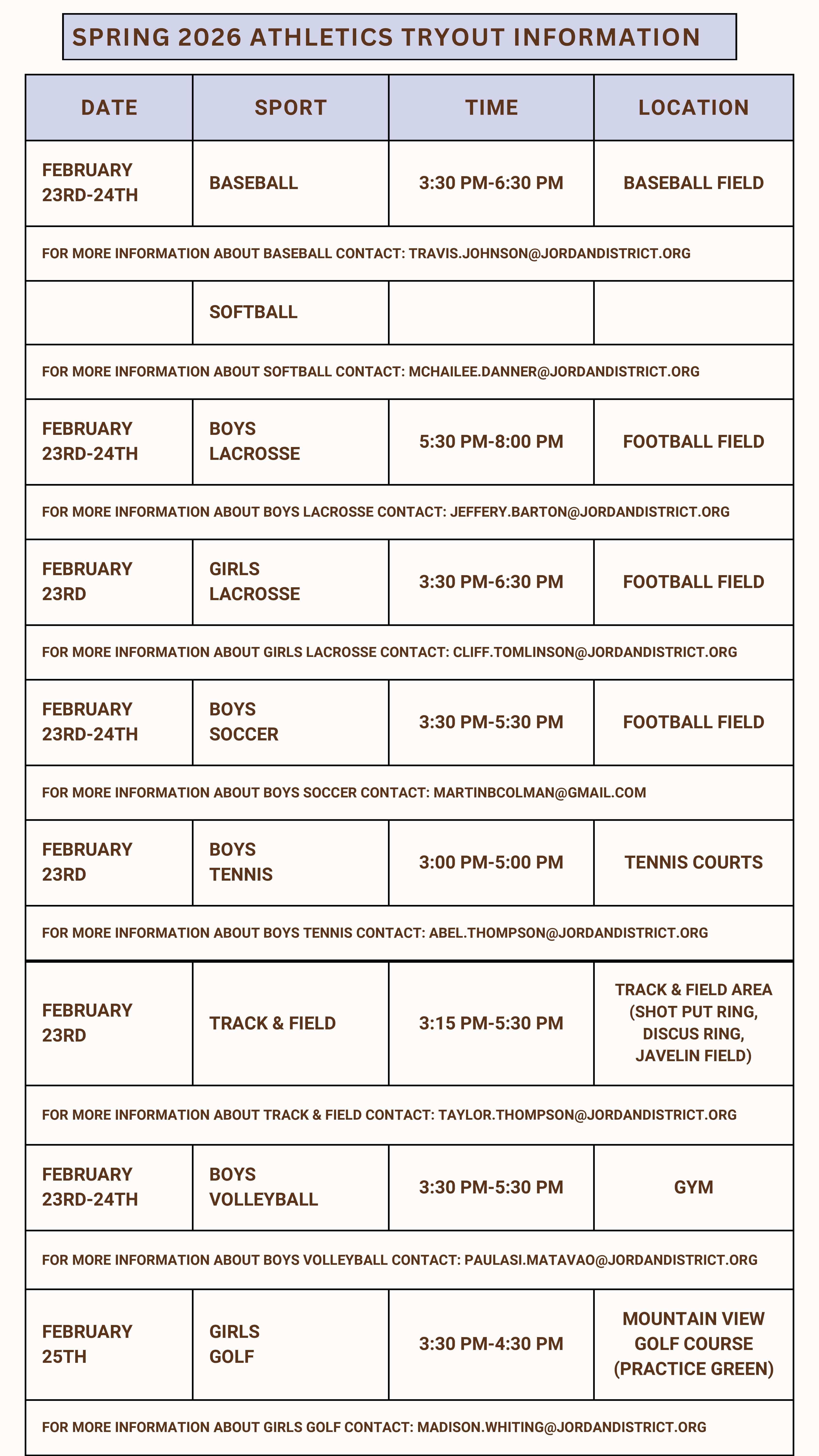 Tryout Schedule